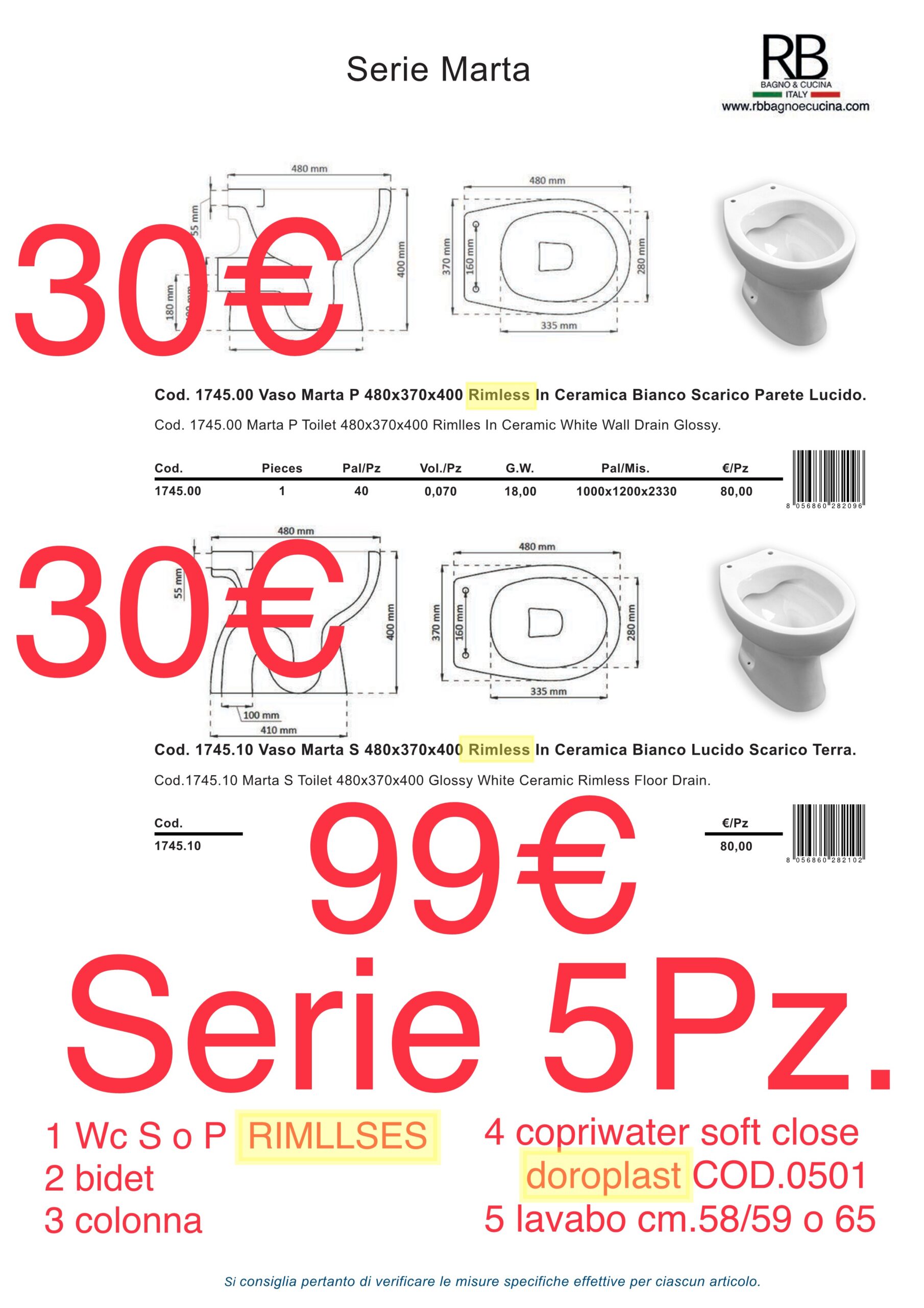 Serie Linda Sedile WC universale Specchio Sirena Piatto doccia in ceramica